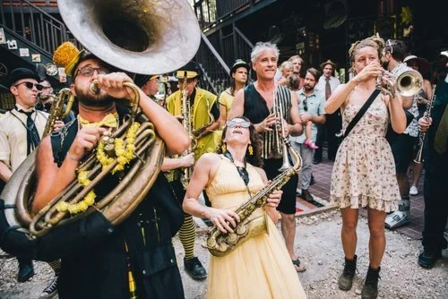 Austin legends Minor Mishap Marching Band and touring French Brass Band KOSMONOT bring the party to Batch’s backyard.